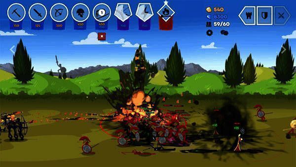 2、战略纵深与克制关系:矿工、剑客、弓箭手、巫师、巨人等兵种相互克制,需合理搭配阵容,手动控制士兵位置以扭转战局。