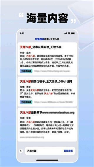 用户能轻松遨游书海,搜索心仪读物,支持一键离线,自由享受阅读。借助强大搜索工具,快速锁定喜爱书籍。提供多种阅读场景,如夜间模式、模拟翻页等,可自定义专属阅读世界。