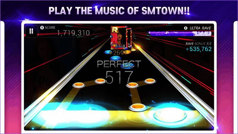 游戏在传统敲击屏幕基础上,新增滑屏操作模式,内含pk和闯关系统。玩家可在激昂的音乐节奏中享受移动设备上的演奏。其最大特点是歌曲由SM旗下颜值高的艺人卡牌和成名曲组成,艺人最新曲目会持续更新,游玩时赏心悦目。