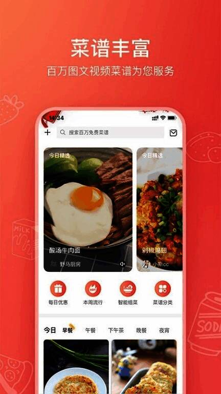 3. 精准快速搜索:丰富分类助用户准确快速找到感兴趣的食谱。