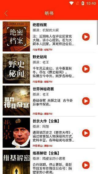 - 内容库丰富:涵盖小说、历史、科普等多领域的大量有声图书资源,满足不同用户多样需求。