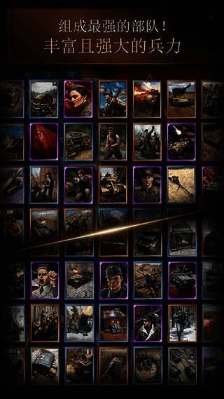 3、丰富武器与英雄:集结步兵、战车、火炮等,研究真实武器,解锁模拟真人的战争英雄,丰富军队组合。