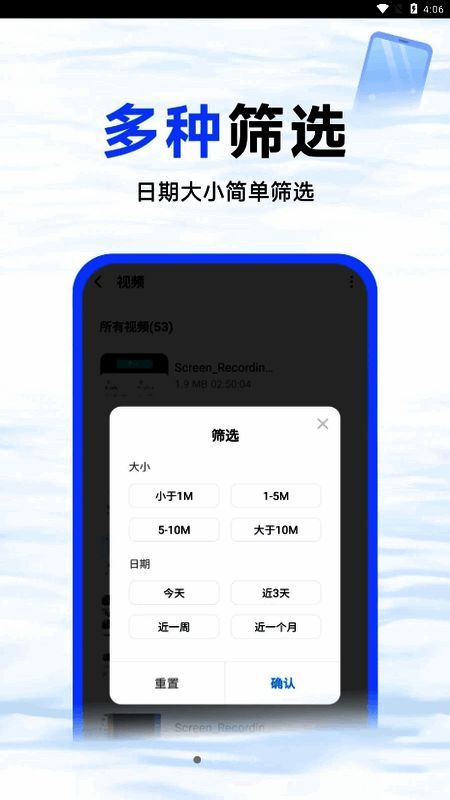 2、多种筛选方式,有简单的日期和大小过滤器。