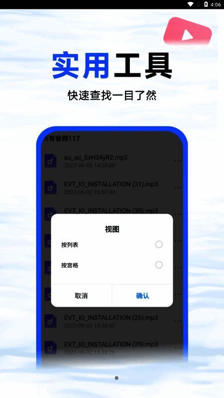 2、实用工具——可根据日期、大小等条件快速查找视频、音频、图片等,清晰明了。