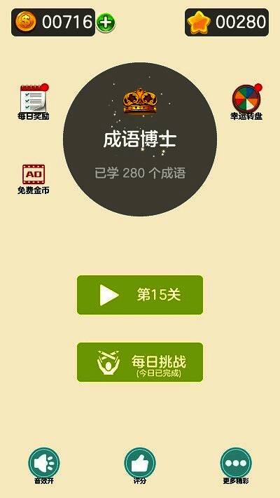 4、有排行榜系统,可与全球玩家比拼,挑战自我成成语达人。