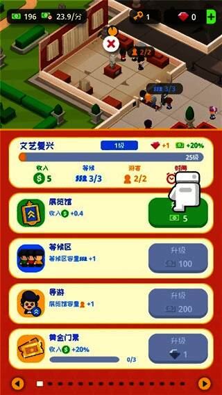 翻新你的博物馆,随着等级提升改变装饰,还可以收集特殊的装饰品来点缀你的博物馆,当然,门票也必须涨价了。