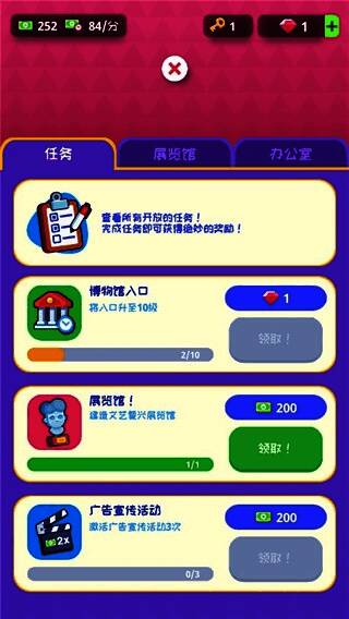 3、升级扩建机制:随着资金的增加,博物馆可以升级改造,解锁新的展览区域和功能。