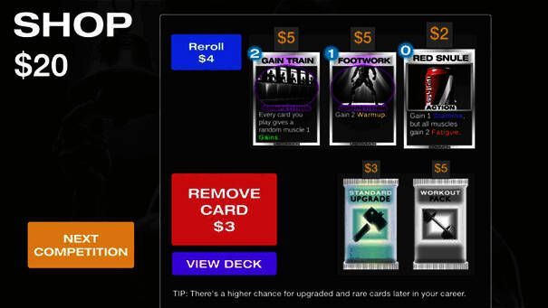 第七步、获胜获得金币奖励,用于购买新卡牌,不断获胜成为健身冠军。