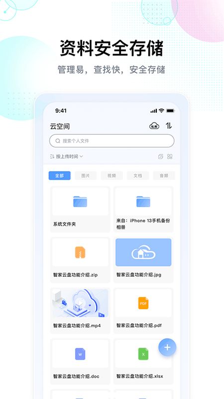 智家云盘是一款功能强大且实用的云存储软件。用户能在其中轻松管理照片、视频及各类格式文件,它会自动备份数据,保障数据安全,还能有效释放手机空间。同时,支持家庭云共享,一人上传,多人实时共享,为工作和学习带来便利。用户可将个人照片、文件上传至云端,随时便捷存储与下载。