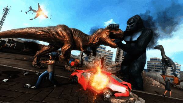 - 玩家操控恐龙在城市搞破坏,摧毁建筑、车辆和敌人,尽享破坏乐趣。