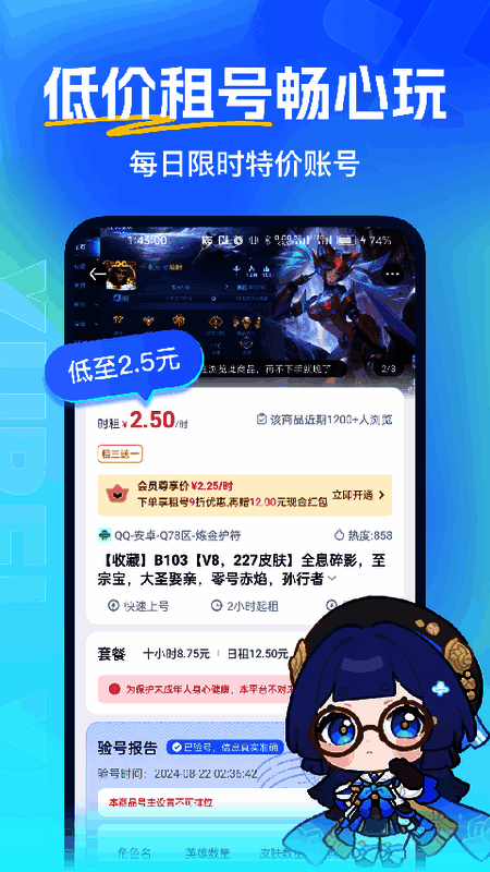 虚贝租号一元租号即虚贝网应用程序,是专业游戏账号租赁平台,主推CF、LOL、王者荣耀和绝地求生等热门游戏账号,拥有大量高级账号和丰富功能。在游戏行业发展态势下,它成为以高质量、专业和安全著称的玩家账户交易中心。