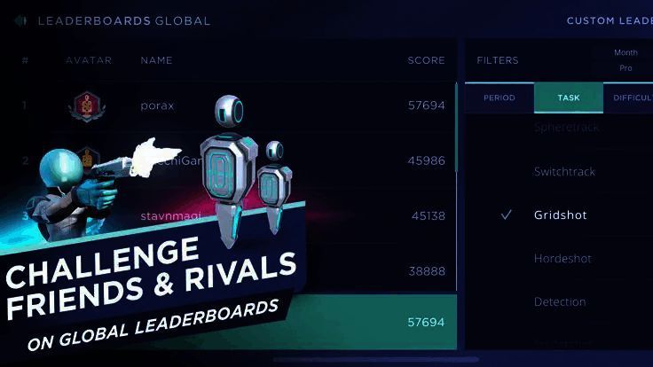 1、适合所有职业和非职业玩家训练不同强度等级的FPS能力,每个训练任务都有针对特定领域的独特分析。