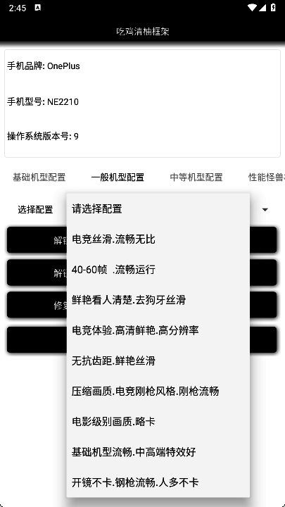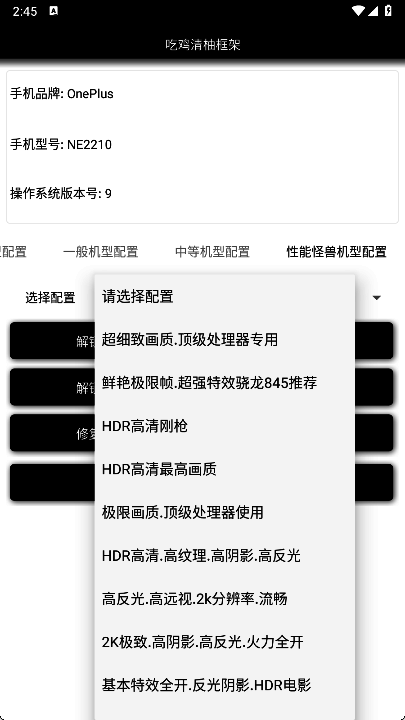 清柚框架2025最新版软件,能优化屏幕亮度、对比度和分辨率,显著提升吃鸡游戏表现力,呈现更清晰的显示效果。它还支持手机整体画质调整,优化分辨率与清晰度,让屏幕显示细腻生动。软件内置听音、位置识别、配置修改等多样化工具,方便用户优化应用体验,满足多场景需求。