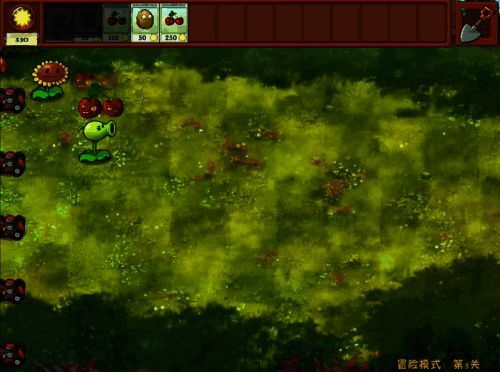 2、用高于向日葵高度的坚果保护一路,其他路可种“豌豆土豆雷”和“豌豆坚果墙”。