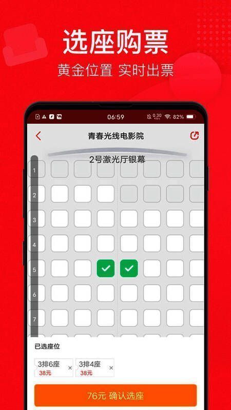 4. 支持提前在线选座,覆盖全国7000多家影院,实时跟踪放映时间,无需等待即可提前选好座位。