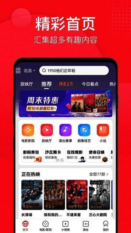 3. 在线选座方便实惠,支持多种付款方式,近千家影院提供团购和优惠券。