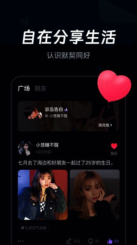 2. 实时在线聊天,依缘分匹配同道之人,邂逅惊喜。