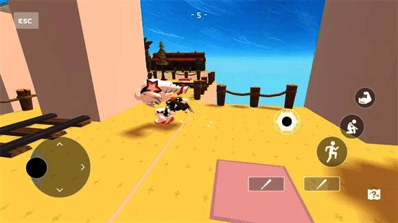4、进入地图后,左边轮盘控制角色移动,右边轮盘控制表情,其他按钮分别是攻击键、跳跃键、蹲下键。