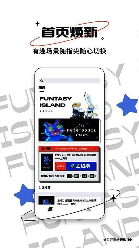 纷玩岛票务范围广泛,涵盖演唱会、小型演出、电子音乐活动、明星出席活动等。用户可在此平台购买各类门票,还为小企业群体提供奖励和团购福利,助其及时获取海量潮流资讯与动态内容。用户能依兴趣选择不同时间演出门票,许多名人门票提前售卖,方便随时获取演出信息。