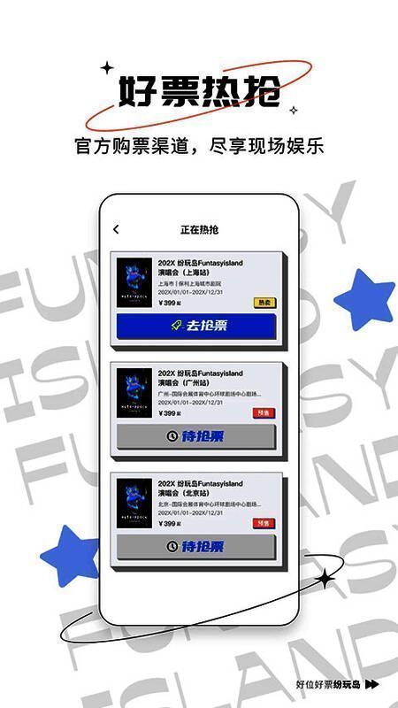 纷玩岛演唱会门票官网版是一款聚焦粉丝服务的演唱会购票软件。平台内容多元,涵盖采访资讯、迷你综艺、深度话题等,能为用户带来出色的娱乐与潮流生活体验。它可让用户抢先获取最新流行娱乐资讯,近距离感受偶像魅力,还能共享直播的喜悦。