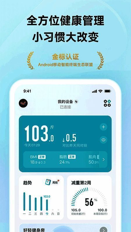 好轻体脂秤是一款实用的移动健康管理软件,深受数百万有减肥、运动、记录饮食及管理体重需求人群的青睐。用户能全面追踪8项身体数据,管理自身与家人健康,通过与智能体重秤配对将数据存于云端。除记录体重、步数等基础信息,还具备身体报告、饮食和运动管理等新功能。其减肥社区可让用户分享秘诀,获专业运动饮食计划与减肥视频。已助超40W用户达成理想体重。