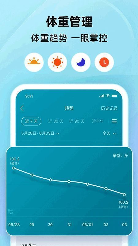 1. 可手动记录体重,数据能隐藏保护隐私,还有清晰的体重变化趋势图,实时分析体重数据变动。