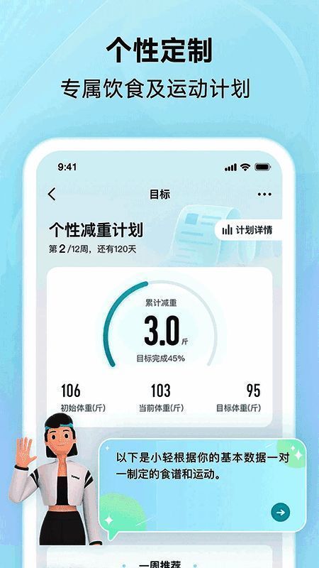 1. 输入体重目标,一键生成管理计划。
