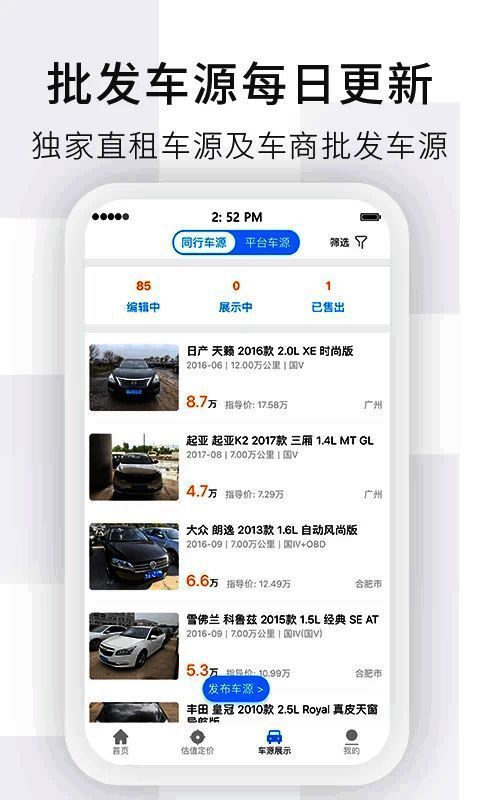 车e估商家版专注于服务二手车商,为其打造便捷评估工具。此应用集车源信息管理、在线评估、车辆采购等众多功能于一体,助力车商高效开展交易与管理工作。用户能批量上传车辆图片,实时更新信息,借助贷款计算器、违章查询等小工具优化购车流程。它为车商提供全方位解决方案,让汽车交易更简便,适用于所有对二手车市场有兴趣的用户,辅助车商完成车辆评估、管理、查询、采购、处置全流程,契合线下交易场景。