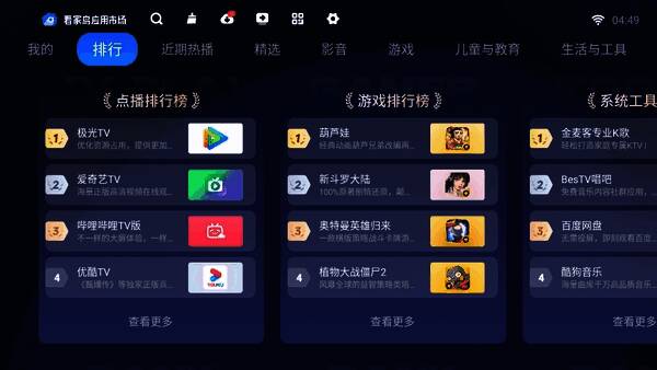 看家鸟市场TV版是一款专为智能电视用户打造的实用且独具特色的电视应用市场软件。它提供高品质电视桌面工具,有海量应用市场安装包可下载,推荐丰富多样的电视应用程序,支持一键管理本地应用,带来多元化使用体验。
