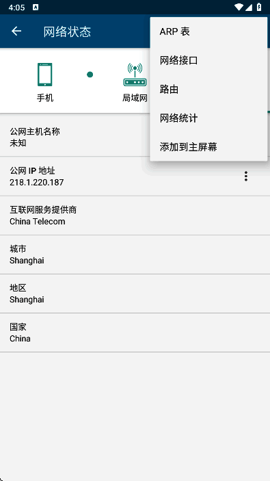 2、网络状态:可查看网络连接类型、网关等。