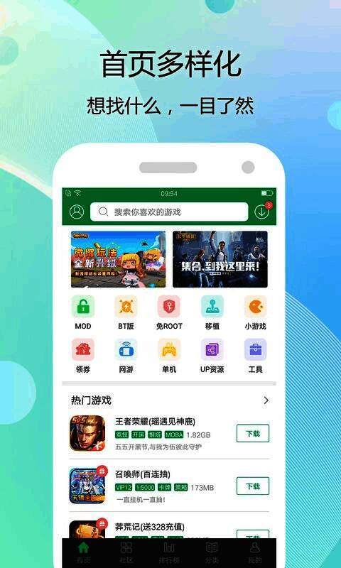 1、全球首创一键下载安装大型游戏,还能自动适配你的机型,免去寻找数据包的繁琐。