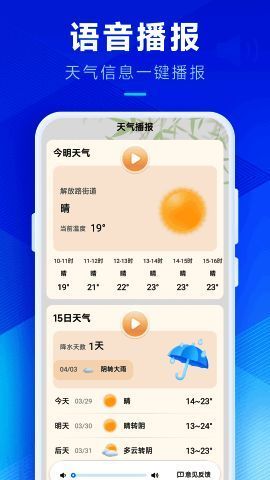 - 便捷语音播报:利用真人语音播报天气信息,增强用户体验。
