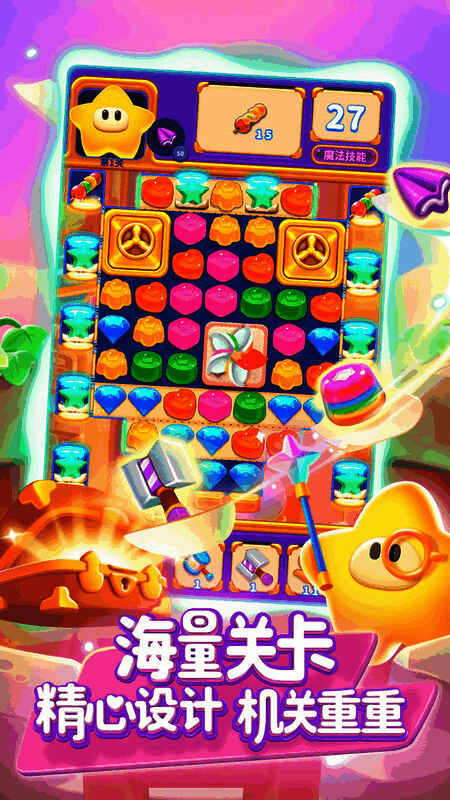 1. 彩色星星设计:玩家通过组合不同颜色星星消除,获取高分。