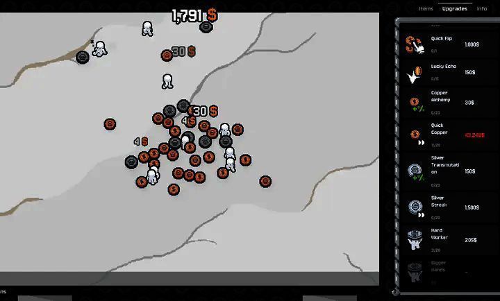 2、持续点击硬币获取更多收益,点击右侧物品可解锁助手和更多硬币。