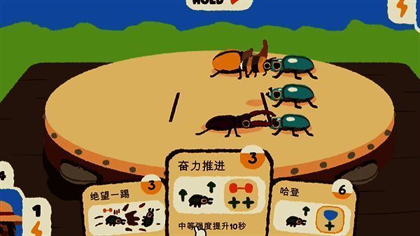 4、采用简单的卡牌构建和卡牌战斗玩法进行昆虫战斗。