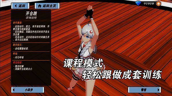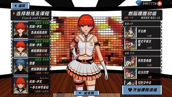 进入游戏后,点击右上角【训练】按钮开始设定你的健身计划。随后从左侧列表中挑选一位心仪的教练,并确认进入下一步。接着继续选择本次训练的具体课程,点击【开始训练】即可正式进入锻炼环节。系统会由虚拟教练示范标准动作,确保动作规范。若想了解更多技巧细节,可随时点击左下角【详细说明】查看提示信息。右下角则显示当前训练进度,玩家也可根据自身情况点击左上角【结束】按钮提前终止训练。最终,系统将根据表现反馈数据统计结果,同时发放金币奖励用于后续课程解锁。