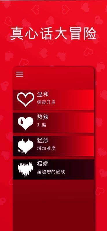 对于追求更高互动体验的情侣来说,“热辣模式”无疑是最佳选择。只需下载安装游戏后进入主界面,点击左上角菜单图标,即可找到“热辣模式”选项进行切换。切换完成后,主页将自动显示热辣模式入口,点击“GO”便可立即开始激情四射的挑战。