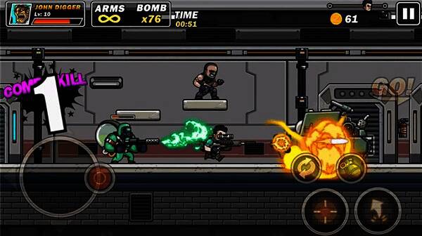 3、巧妙关卡设计:关卡设计独具匠心,场景从废弃工业区到神秘地下基地,多样的环境与障碍让每一关都充满挑战。