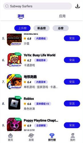 1、首先在007下载并打开playmods最新版应用,点击排行榜;