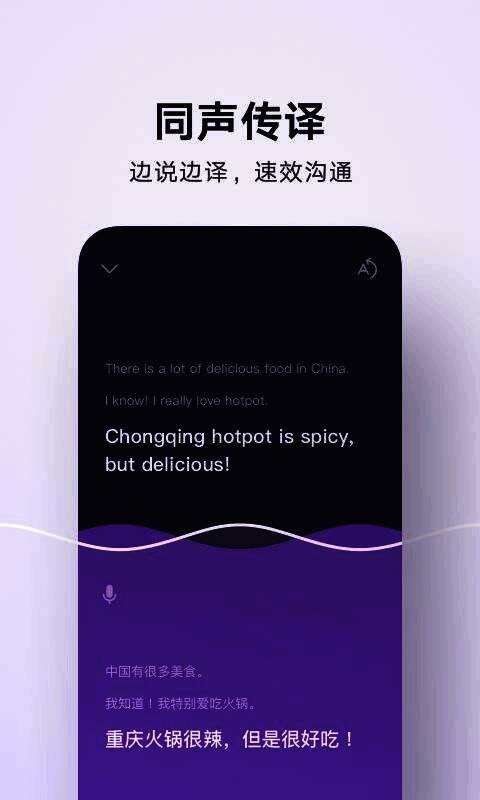2. 同声传译:声音同步,实时翻译,点击查看结果。