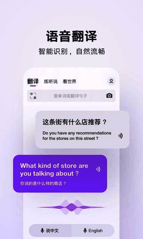 2. 语音翻译:支持中英文发音输入,与外国人实时交流。