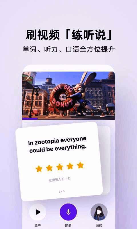4. 口语评估:设置智能跟踪功能,评分助力摆脱哑巴英语。