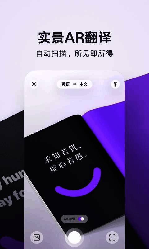 3. AR翻译:手机摄像头对准内容自动扫描,呈现实时结果。