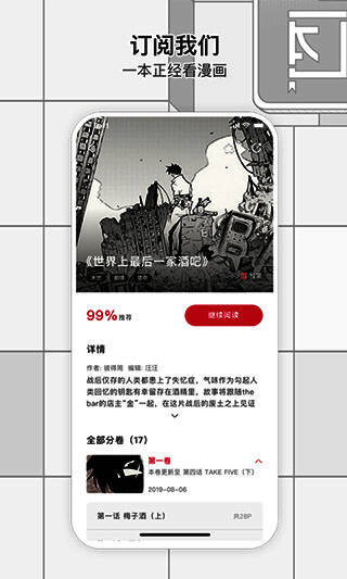 一本漫画官方版界面简单直观,漫画资源丰富,包含韩、日、美等全彩高清官方版本,带来极致视觉体验。支持多种阅读模式,还有实时漫画排名,可解决漫画短缺问题。