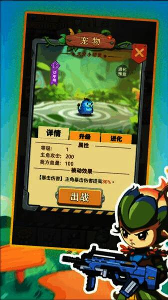 《进化吧植物》是一款策略塔防类手机游戏。游戏中有丰富的天赋供玩家组合不同技能,以满足多样的游戏体验。玩家还能获取诸多武器,阻挡僵尸进攻,刷怪的过程十分畅快。在游戏设定的未来世界,核战爆发,人类灭绝并变成怪物,辐射让植物进化成人,两大阵营原本相安无事。但一只怪物被小植物消灭后,引来一波波怪物复仇,玩家需保卫家园、消灭怪物。