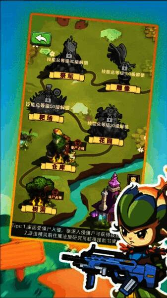 游戏中,玩家需在指定地图布置防御塔。遇到boss时,要自行添加状态以方便通关。游戏重点是让人物不断进化。玩家可领取各种道具,挑战心目中的boss。初期遇到的多是小僵尸,挂机也能轻松过关。