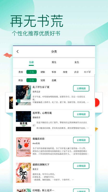 - 具备丰富的小说资源库,涵盖多种题材类型,设有奇幻、都市、言情、武侠等频道,任用户自由查看心仪作品。