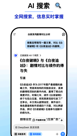 DeepSeek最新安装入口推出的这款AI智能辅助工具,自发布便在网络上掀起了不小的波澜。作为国产AI软件,它的功能丝毫不逊色于chatgpt。它不仅能够实现智能对话,还能依据用户需求完成各类总结与报告,极大地提升了学习和工作效率。此外,它还能快速解答问题、生成内容以及处理分析数据。感兴趣的朋友,赶紧下载体验吧。