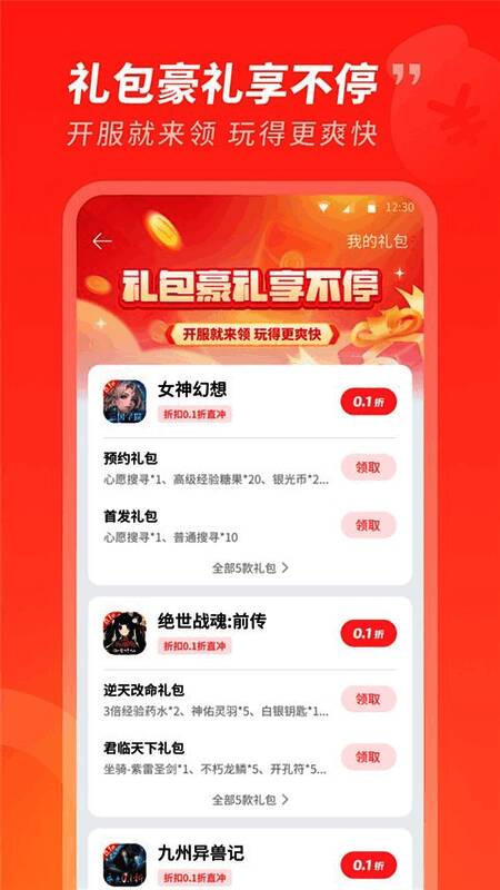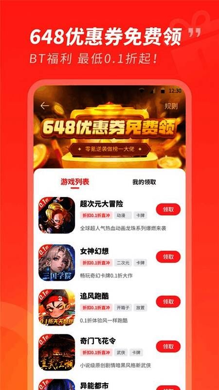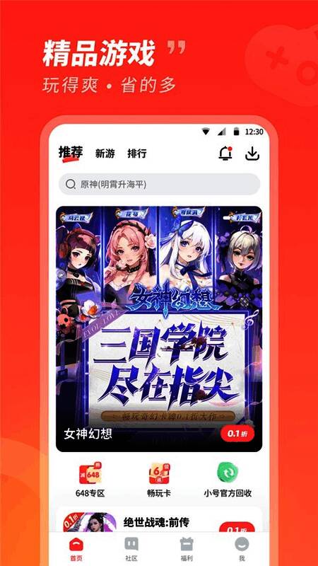 2、高额充值优惠:与众多游戏开发商合作,享更多游戏特权。