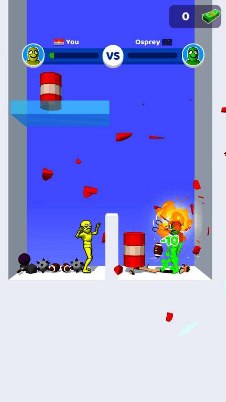 这是一款极具魔性的休闲对战小游戏,玩家通过投掷武器攻击敌人,双方回合制攻击,可使用不同武器。最先倒下者失败。游戏解压感强,能用意想不到的武器战斗,需猜测对手走位精准命中才能让其掉血,最终使其倒下获取胜利。